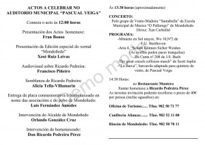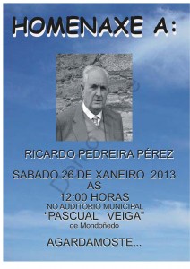 Este sábado 26 de enero se le ofrecerá un homenaje a Ricardo Pedreira Pérez en el Auditorio municipal Pascual Veiga, toda la información del evento en los carteles adjuntos que los puedes ver a pantalla completa haciendo clic sobre ellos.