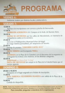 Ya casi está todo listo para que Mondoñedo vuelva a vibrar con el rugir de las cilindradas más potentes por sus calles , con el fervor de un año más de esta ya exitosa ” XXVI concentración mototurística ” que cada año es seguida por más moteros y aficionados a este deporte al igual que por curiosos que son atraídos por tantas y bellas maquinas de la carretera.