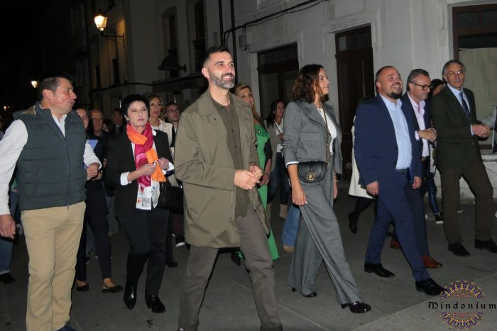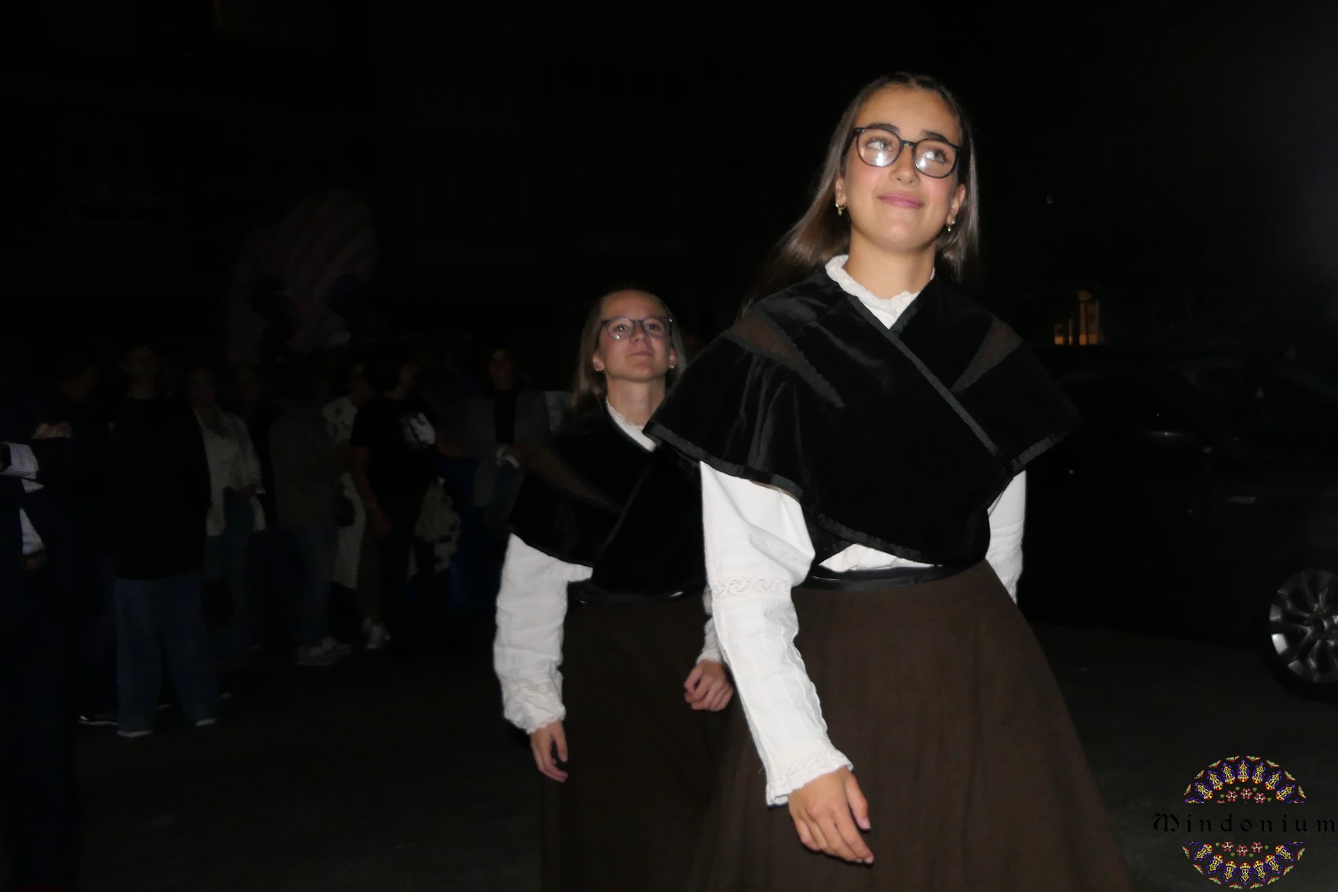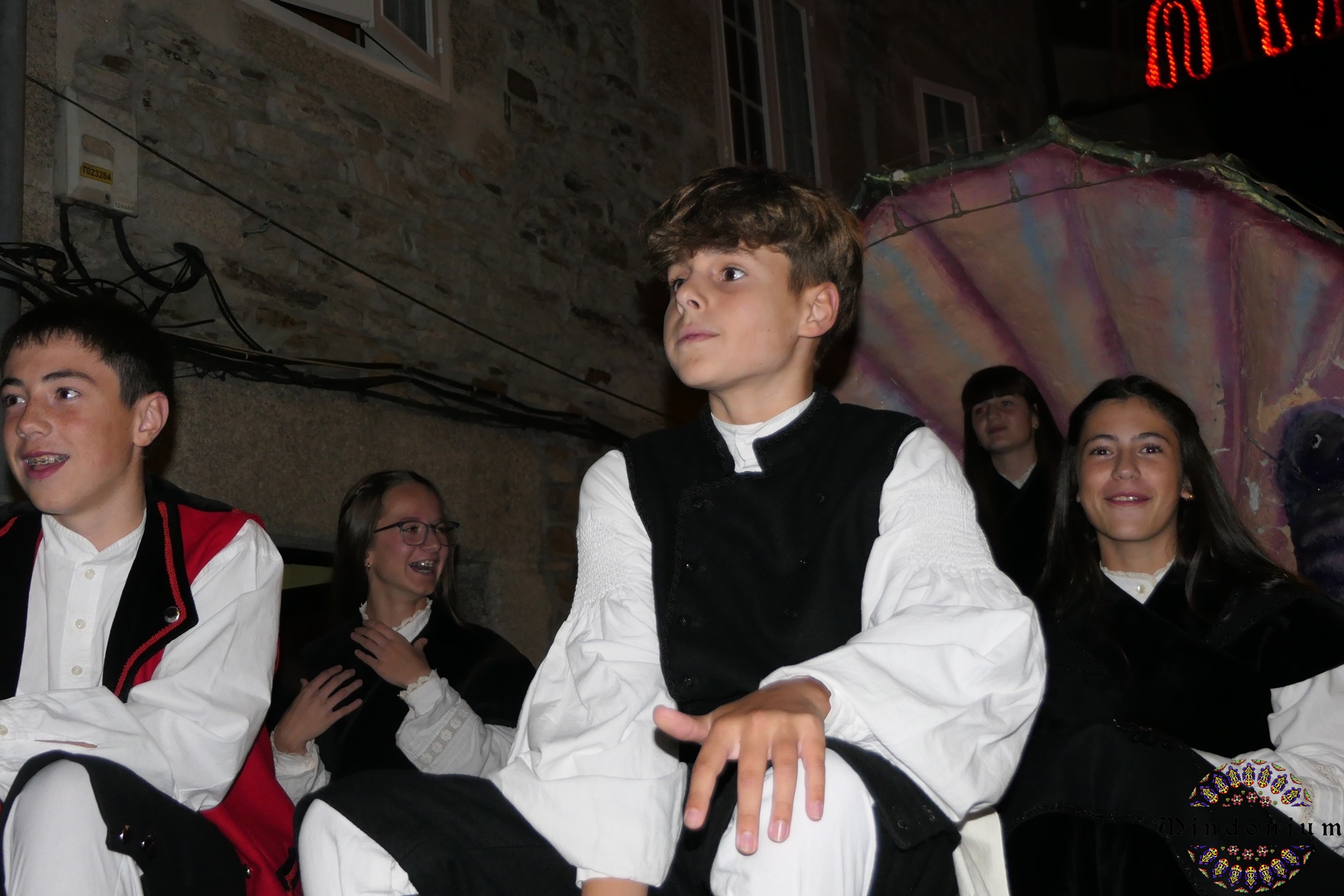 Ás oito e media da noite, a praza do Concello de Mondoñedo encheuse de ambiente festivo coa saída da carroza das Sanluqueiras, acompañada pola comitiva oficial, autoridades locais e o pregoeiro deste ano: Carlos Folgeira, fillo do mítico “Rei das Tartas”.